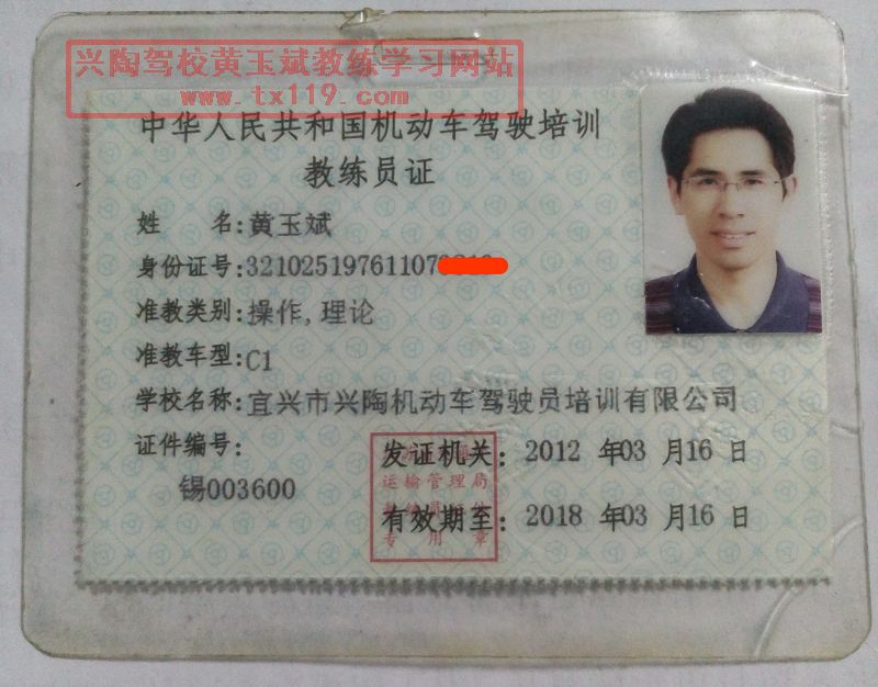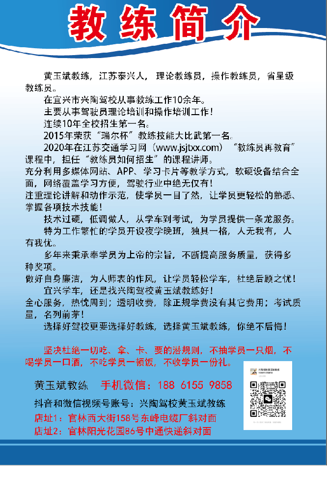 宜兴市机动车驾驶员培训 黄玉斌教练 简介