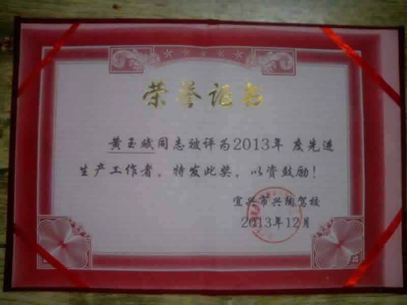 2013年12月,黄玉斌同志 被兴陶驾校评为2013年度先进生产工作者。取得全校第二的荣誉。