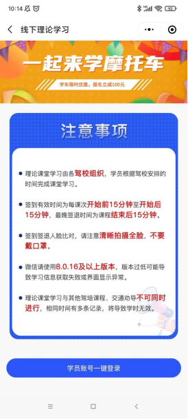第二步:进入“线下理论”查看已安排的线下理论课程详情,完成学员签到、学员签退。签到有效时间为每课次开始时间前15分钟至开始时间后15分钟,签退有效时间为每课次结束时间前15分钟至结束时间后15分钟。