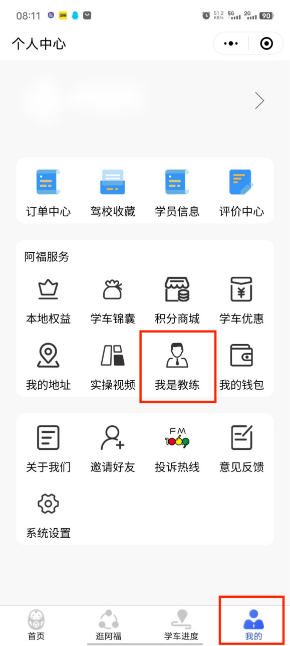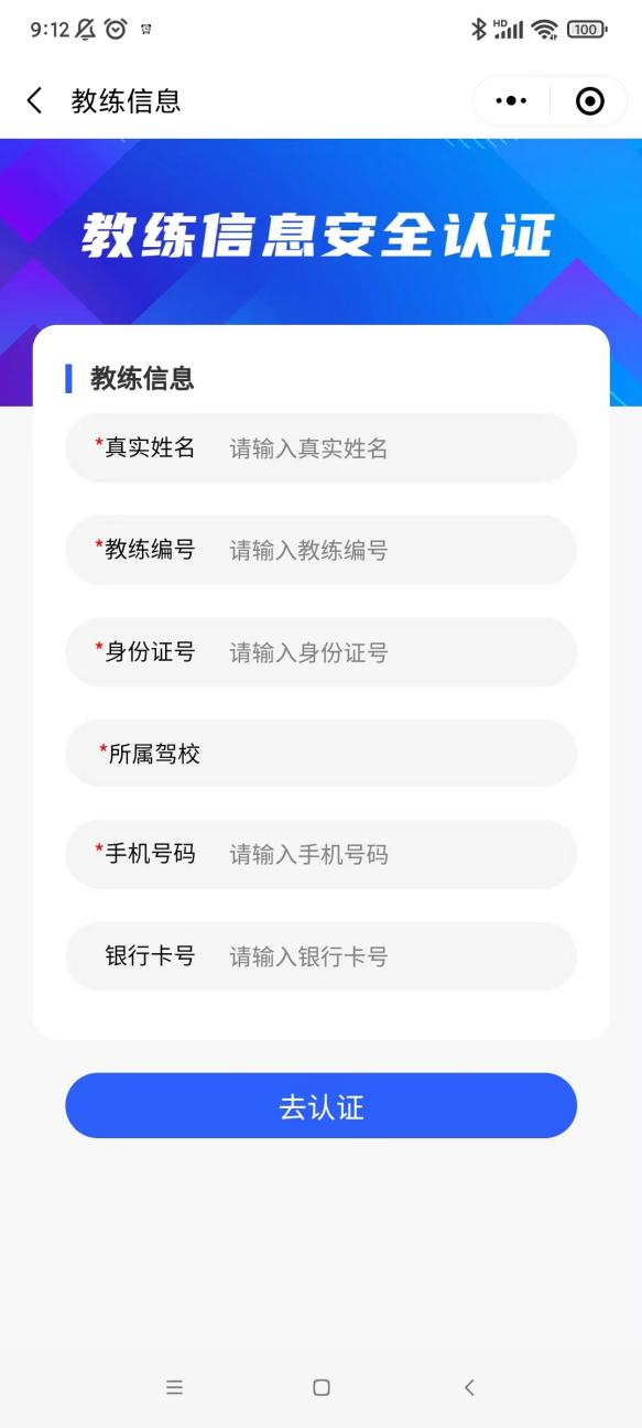 第一步:理论教练员进入“大阿福学车报名平台”小程序,注册认证教练员身份。