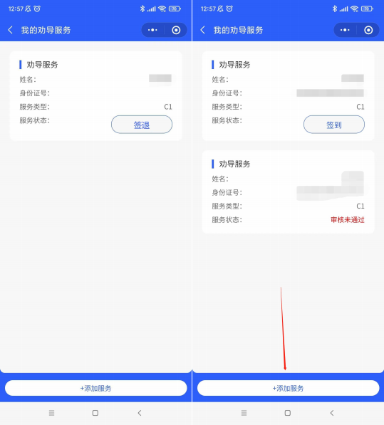 第三步:劝导服务满 2 小时后,点击“签退 ”,完成本次劝导。劝导数据上传后, 经审核通过,将计入科目四学时,如审核未通过,点击“添加服务 ”,重新进行 劝导服务。